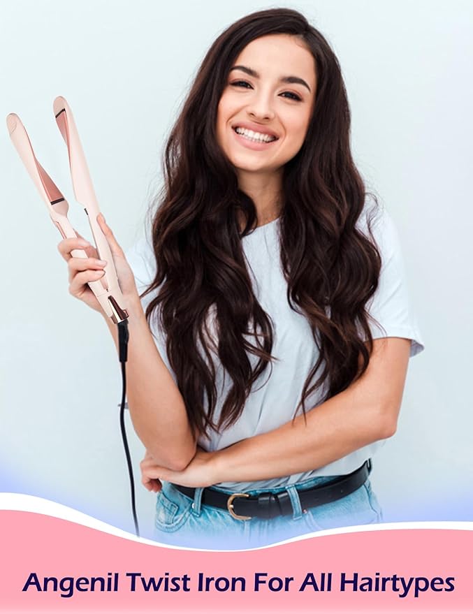 - đăSALON-LEVEL PRO TWIST HAIR STRAIGHTENERăOur straightener adopts advanced PTC heating technology, and ANGENIL focuses on women's hairdressing, which can quickly and easily create professional salon level styling. It has 11 levels of adjustable fine temperature ranging from 250 ° F to 450 ° F, which can intelligently maintain a constant temperature, protect hair from damage, and enhance the natural luster of hair