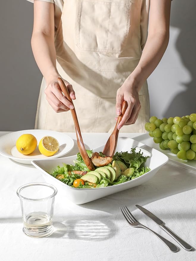 - Convenient Built-In Handles: Designed for effortless entertaining, our white serving bowls feature integrated handles for secure, comfortable transport from kitchen to table. The streamlined handles not only provide practical functionality but also enhance your presentation, naturally guiding guests' attention to the delicious contents within.