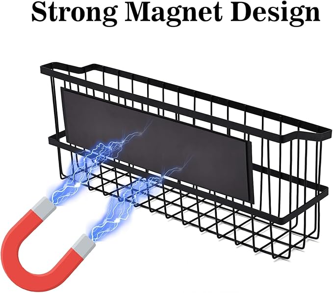 Magnetic Storage Basket, Large Magnetic Fridge Basket with Strong Magnet for Kitchen Laundry Room Office School Organization and Home Dryer Ball Storage, 14.96"x3.74"x5.91"