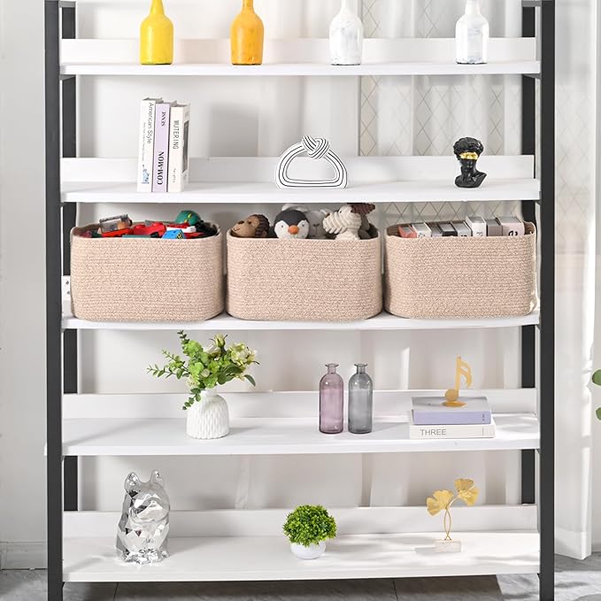 Large Storage Baskets for Organizing Shelves, Woven Cotton Rope Bins for Baby Nursery Organization, Book Toy Towel Organizer, 17"x13"x9.5", 3 Packs, Brown