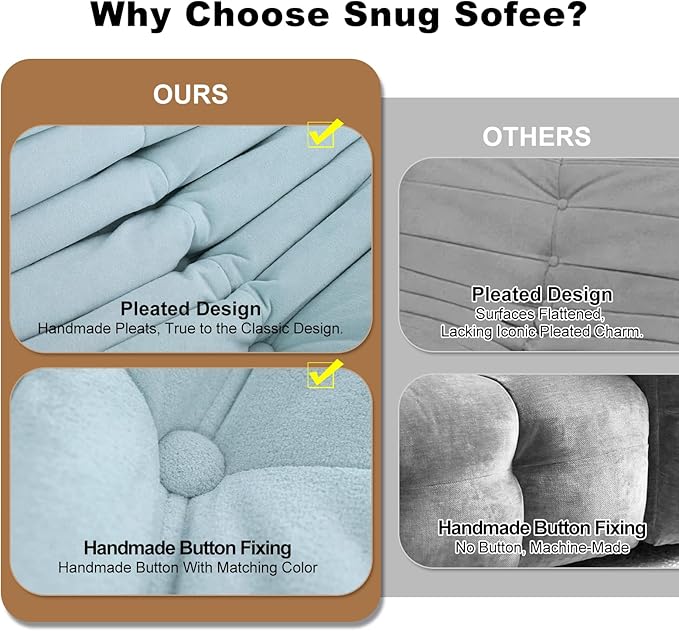 - [π¬ππππππππππ πͺππππππ]: Bean Bag Chairs Filled with 100% high-density memory foam and designed with ergonomic curves, this bean bag chair is soft yet resilient. Whether you're gaming, reading, or taking a nap, the Snug Sofee bean bag chair provides gentle support, bringing peace and relaxation to your body and mind.