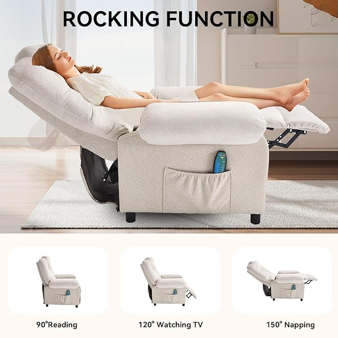 KCREAM Massage Chair Recliner with Heating,Recliner Chair for Adults,Small Recliners for Small Spaces Overstuffed Reclining Chairs Single Sofa Recliners with Side Pocket for Living Room,Fabric Beige