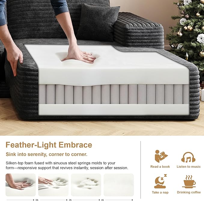 108" Sectional Couches for Living Room Modern Modular Sofa with L-Shape Couchs Upholstered Boneless Couch Deep Seat Sectional Couch with Chaise (Black, Right Facing Chaise+2Seaters+1Ottoman)