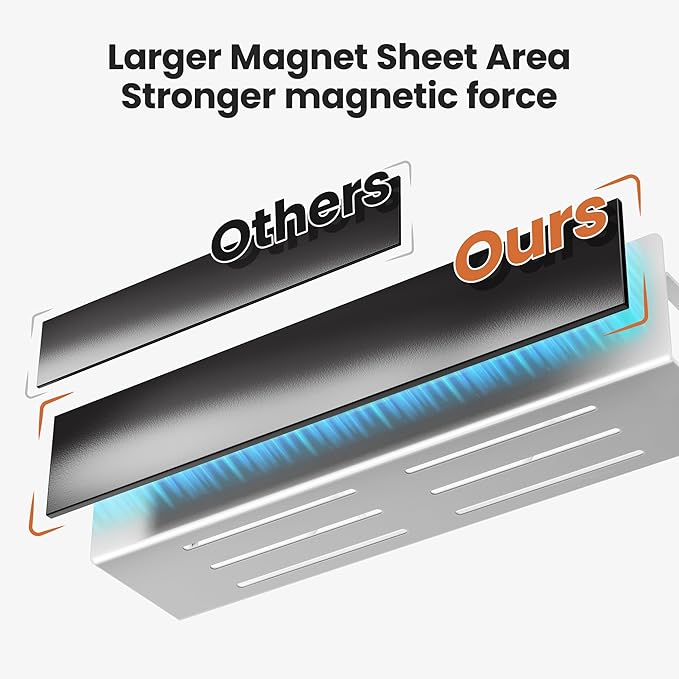 - Magnetically strong: no mounting or assembly required, each shelf can hold up to 11 lbs.