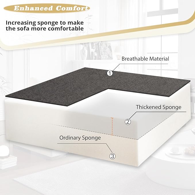 - ASSEMBLY EASILY : This L couch is easy to be assembled by 2 persons, following the instructions step by step. Overall size: 84”(L) X 56”(D) X 35”(H)