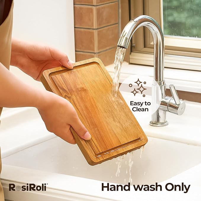 - Selected Wood & Knife Friendly - Crafted of solid natural acacia wood. Designed to protect the sharpest blades, our wood boards also provide stability during use and look handsome enough to keep out on the counter.