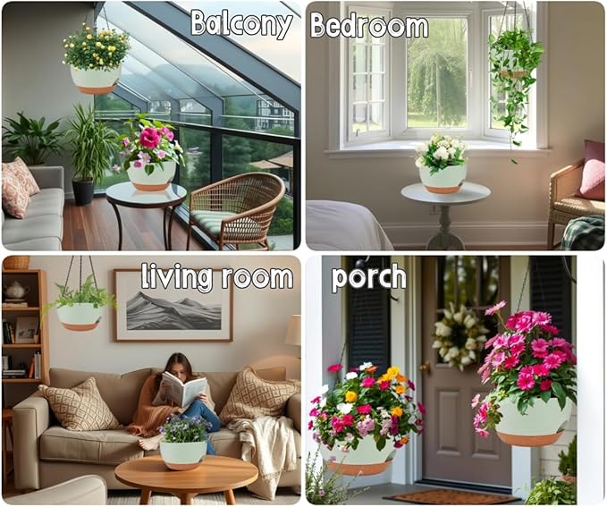 - ✅ 2 Large Self-Watering Planters: Double the value! Includes two 12-inch wide plastic hanging planters with built-in self-watering reservoirs to reduce the need for frequent watering and keep plants healthier.