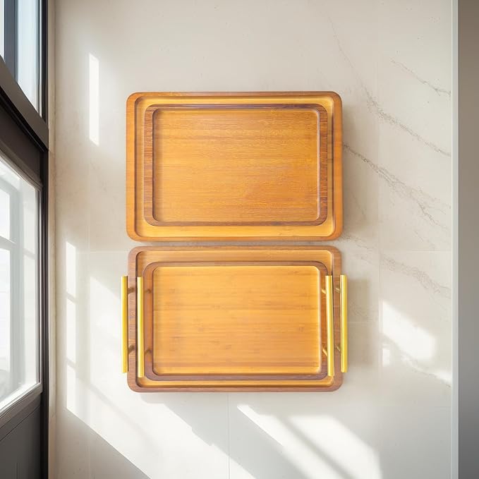 Bamboo Serving Tray – Two Sizes for Breakfast, Tea, Coffee & Snacks – Eco-Friendly Wooden Tray for Bed, Kitchen, Coffee Table, or Decorative Use