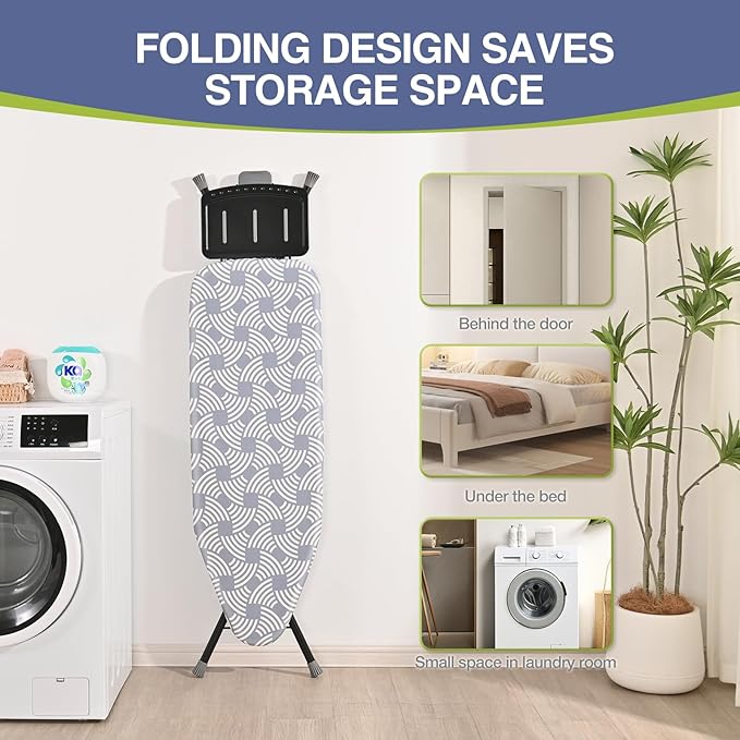 - Space-Saving Foldable Design-When not in use, simply fold it flat! This foldable ironing board is designed for compact storage—tuck it neatly in a closet, behind a door, or under a bed without taking up valuable space.