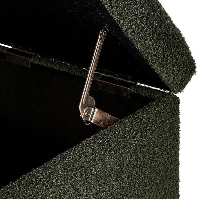 Adeco 17 Inch Soft Dark Green Cube Ottoman Storage, Teddy Velvet Chair Foot Stools, Upholstered Vanity Stool with Hinged Lid, Solid Round Wood Legs