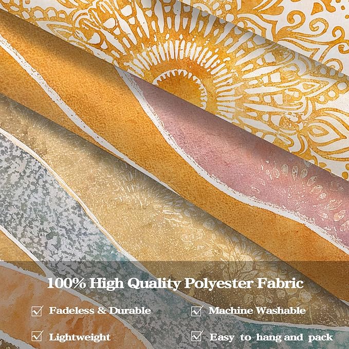 - Artistic Sunrise Design: Features a beautiful sunburst with an intricate mandala pattern over abstract, rolling landscapes, perfect for a bohemian aesthetic.