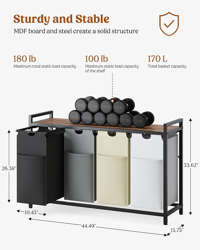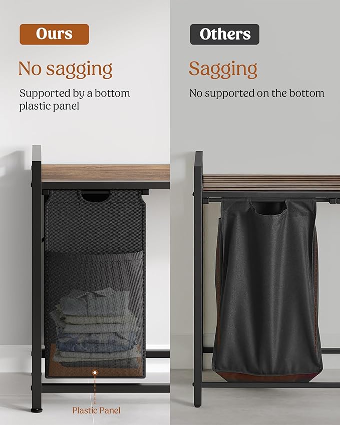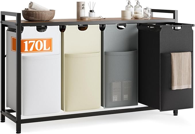 - Pull-out & Removable Design: 4 collapsible laundry sections is designed for easy pull-out of the clothes hamper, then you can remove the laundry bags to the laundry room. Feature a bottom board to offer extra support -No Sag When Laundry Bags Full.
