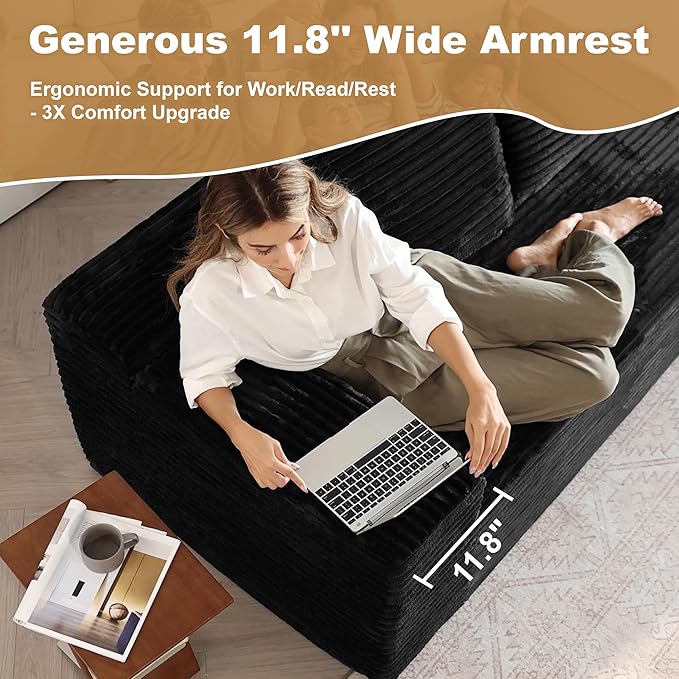 136" Sectional Couches for Living Room Modern Modular Sofa with L-Shape Couchs Upholstered Boneless Couch Deep Seat Sectional Couch with Chaise (Black, Right Facing Chaise+3Seaters)
