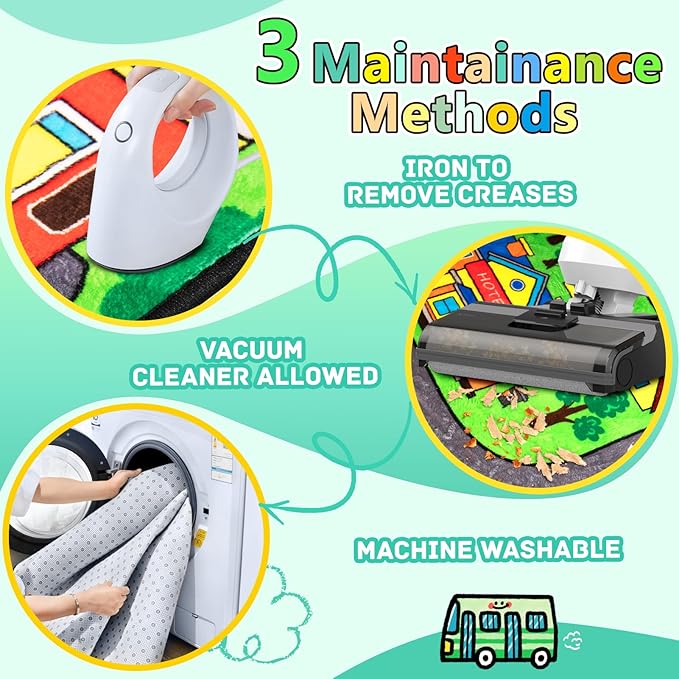 - [About Creases & Thickness]Due to vacuum package, the road map rugs for kids may feel thinner and have wrinkles after right unpacking.Please don't worry,it will take 3 to 7 days for the kids rug to regain its original shape.You could also use a steam iron to smooth out creases caused by shipping folds