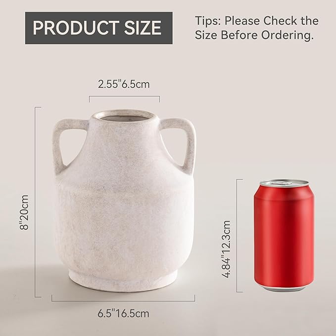 Mitt&Ditt Ceramic Flower Vase with Handles, 8 inch Tall Off-White Vase, Decorative Terracotta Vases, Farmhouse Rustic Pottery Vases for Home Decor, Living Room, Table