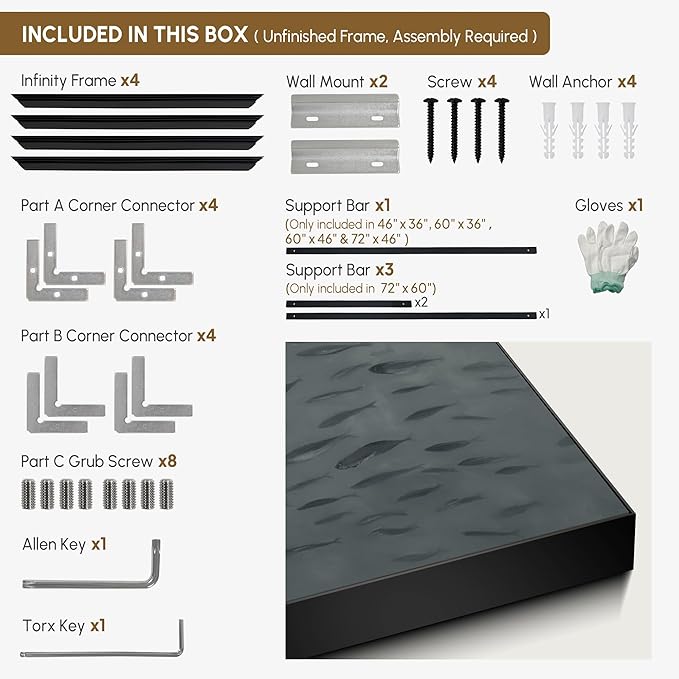 - Assembly Required: The artwork comes with the frame components unassembled. Don¡¯t worry - setup is straightforward and tool-friendly. For best results and accurate alignment, we recommend two people to ensure a smooth assembly and a stable, secure wall mount.
