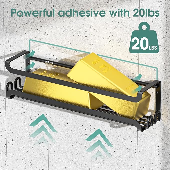 LUCYCAZ 6 Pack Wall Mounted Spice Rack with 22 Hooks, Spice Organizer Shelf for Stove Cabinet Pantry Door,Screw or Adhesive Spice Shelf Hanging Wall Spice Rack in Kitchen and RV (Black, 6 PACK)