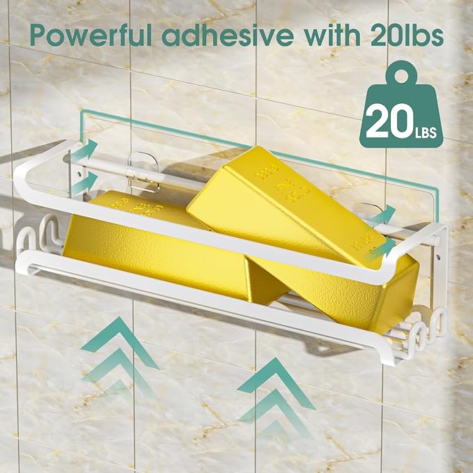 LUCYCAZ 6 Pack Wall Mounted Spice Rack with 22 Hooks, Spice Organizer Shelf for Stove Cabinet Pantry Door,Screw or Adhesive Spice Shelf Hanging Wall Spice Rack in Kitchen and RV (White, 6 PACK)