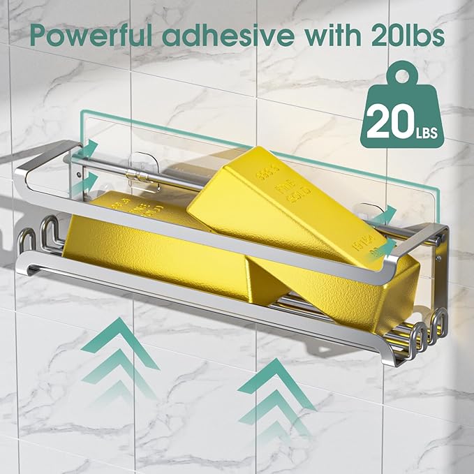 LUCYCAZ 4 Pack Wall Mounted Spice Rack with 16 Hooks, Spice Organizer Shelf for Stove Cabinet Pantry Door,Screw or Adhesive Spice Shelf Hanging Wall Spice Rack in Kitchen and RV (Silver, 4 PACK)