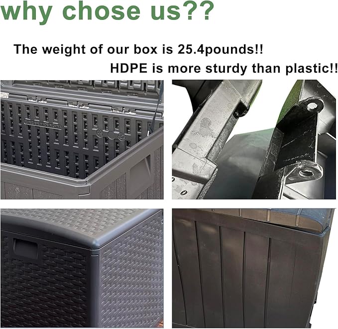 - Our Promise: At Alsophla Home, your happiness comes first! We’re dedicated to the best customer experience, ensuring your satisfaction with a hassle-free satisfaction guarantee—if you’re not thrilled with our outdoor storage box, we’ll make it right, no questions asked. Contact us anytime—we’re here for you