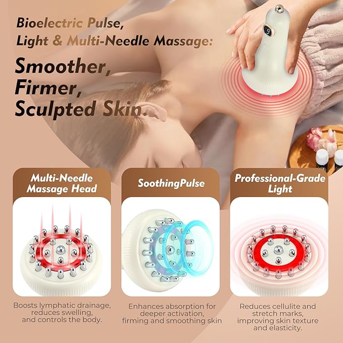 - 【Safe & Certified】:Made with hypoallergenic silicone, and auto-shutoff protection for worry-free use. Note: This anti cellulite massage tool is a personal care device for relaxation purposes, not a medical treatment device.