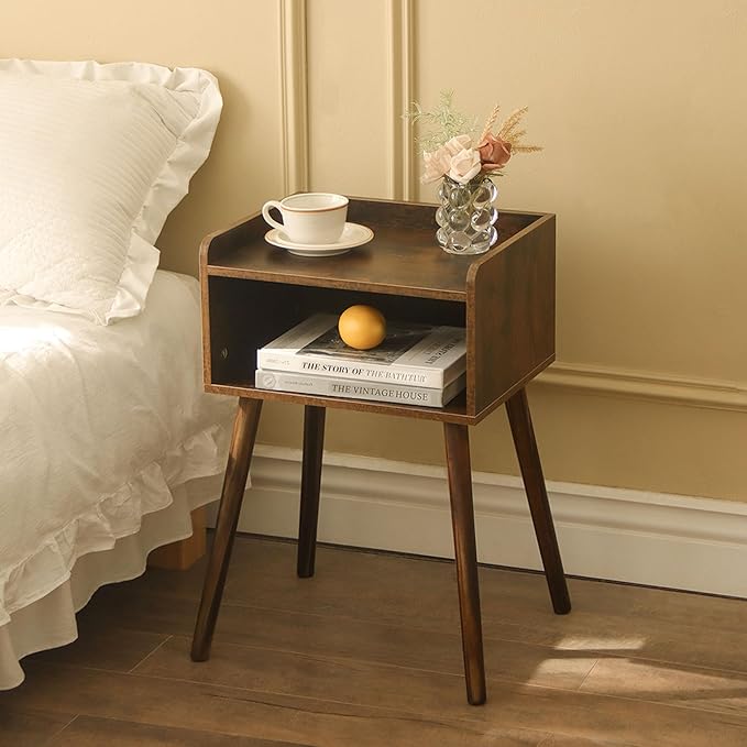 MaxSmeo Night Stand Set 2, Mid Century Modern Side Table Bedroom with Storage, Small End Bedside Table Set of 2 with Solid Wood Legs for Living Room, Office Small Spaces (Rustic Brown)