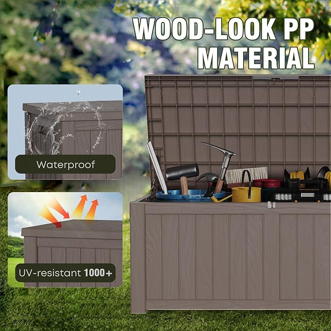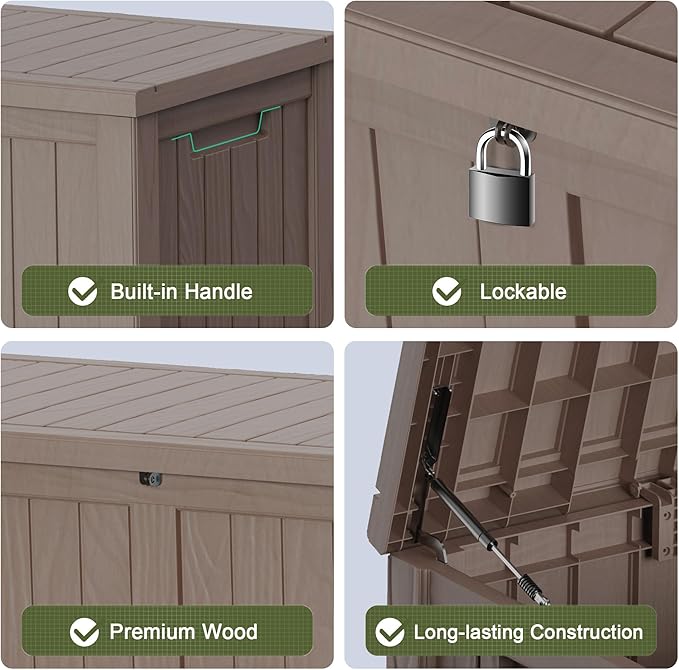 - All-weather protection: Resin material provides reliable protection for deck box storage (waterproof, UV resistant, fade resistant, and warp resistant), virtually maintenance-free for years to come.