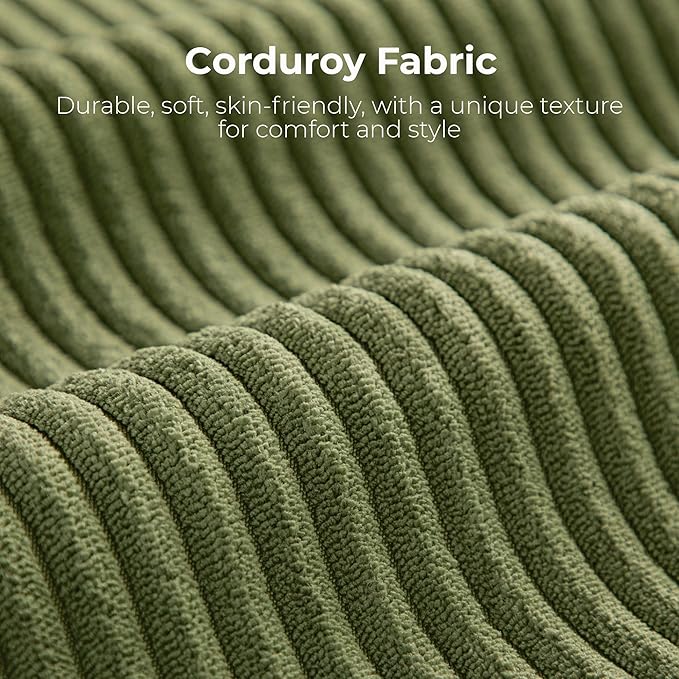 - Premium Corduroy Upholstery: Indulge in soft, skin-friendly corduroy fabric. Highly durable, stain-resistant, and pilling-resistant, it maintains its elegant texture for years, adding sophistication to any space