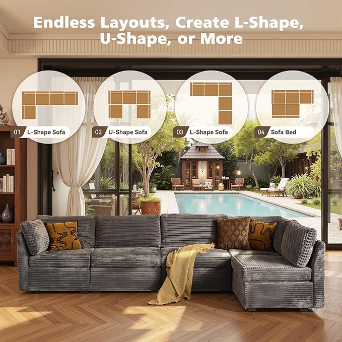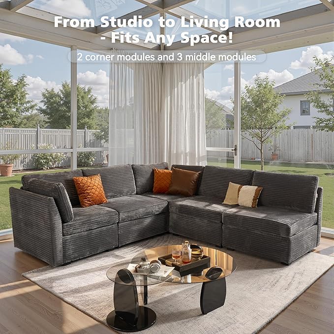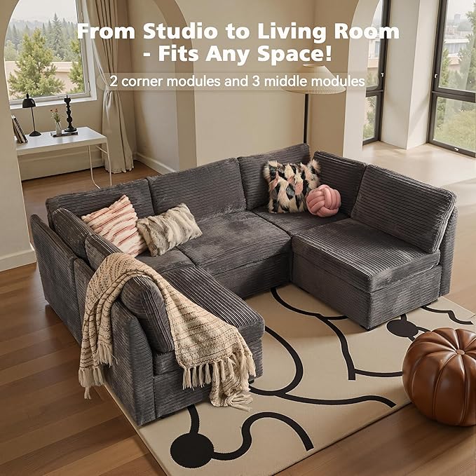 - Spacious Furniture:Sturdy solid wood frame, high-end breathable Plush corduroy fabric, filled with high rebound sponge, making this modular sectional sofa beautiful and comfortable, it can be a perfect match for your living room, bedroom, home office, etc.