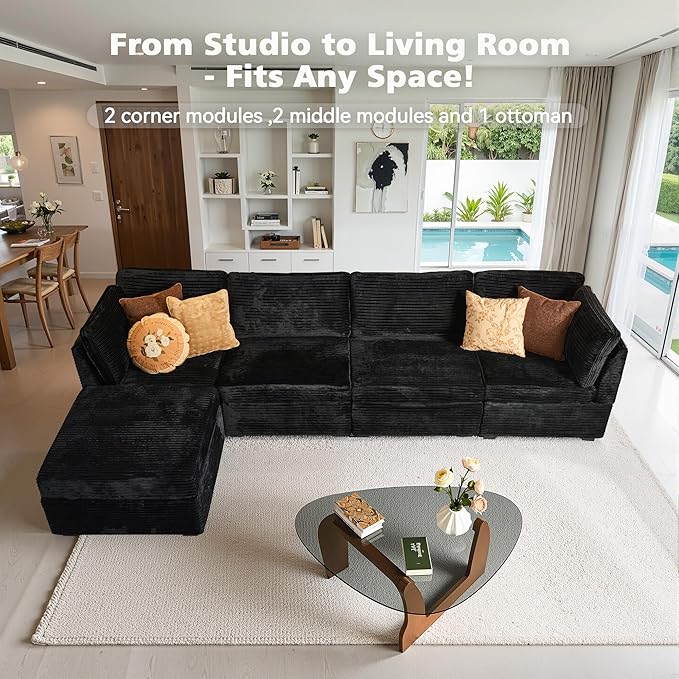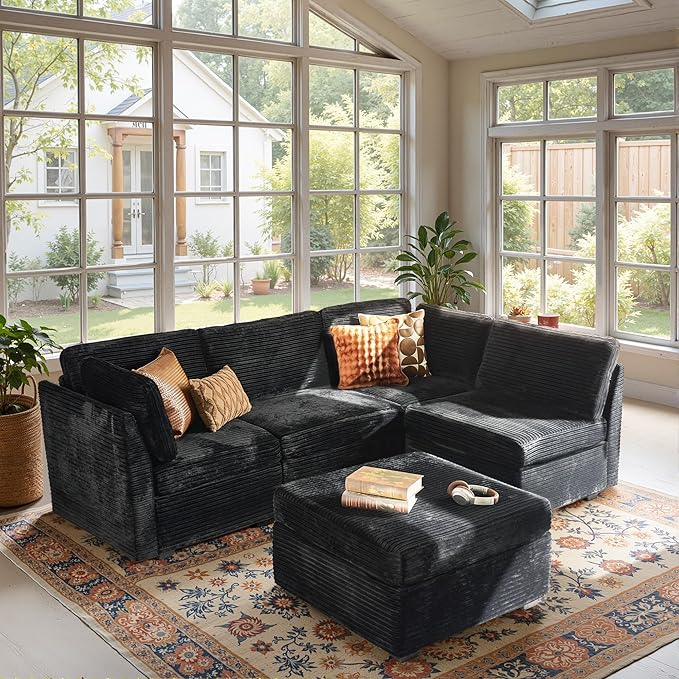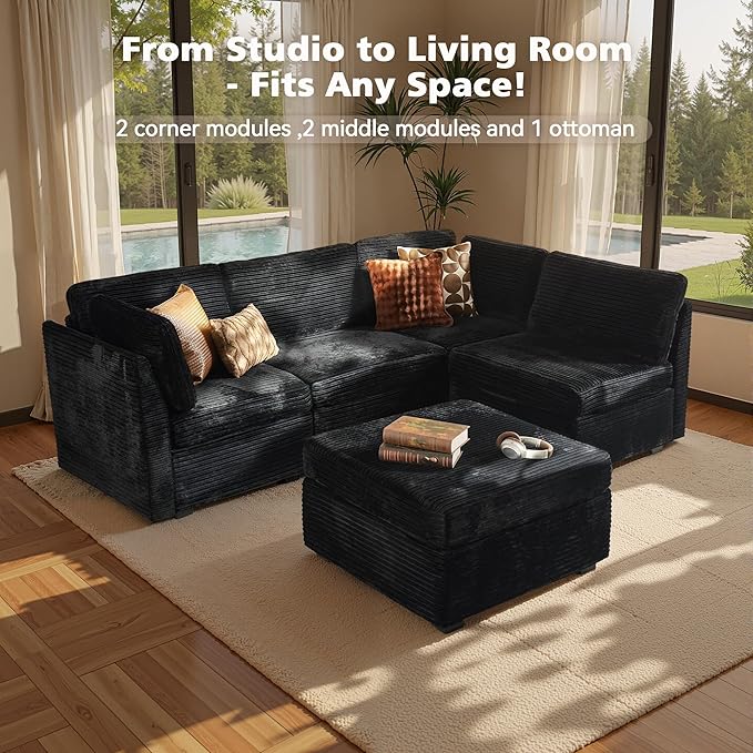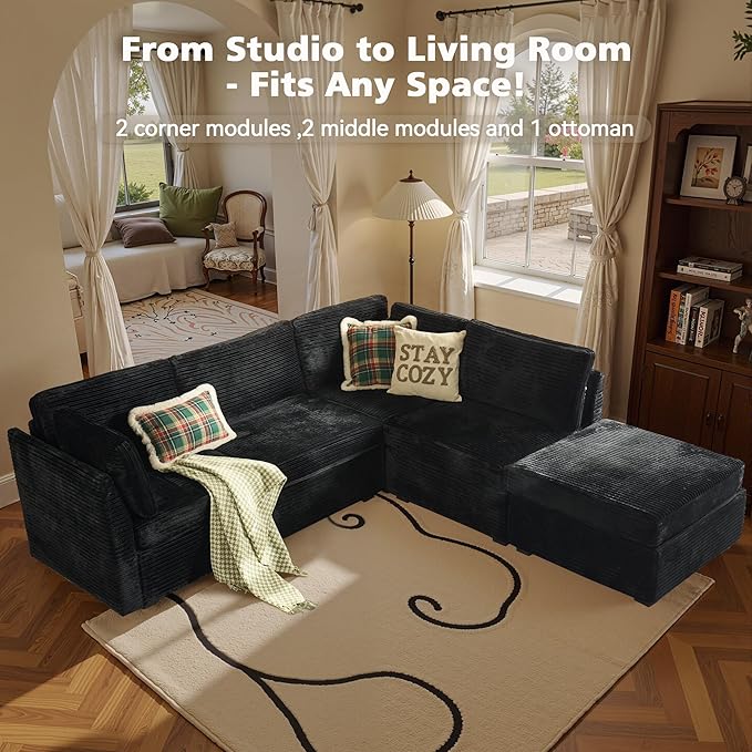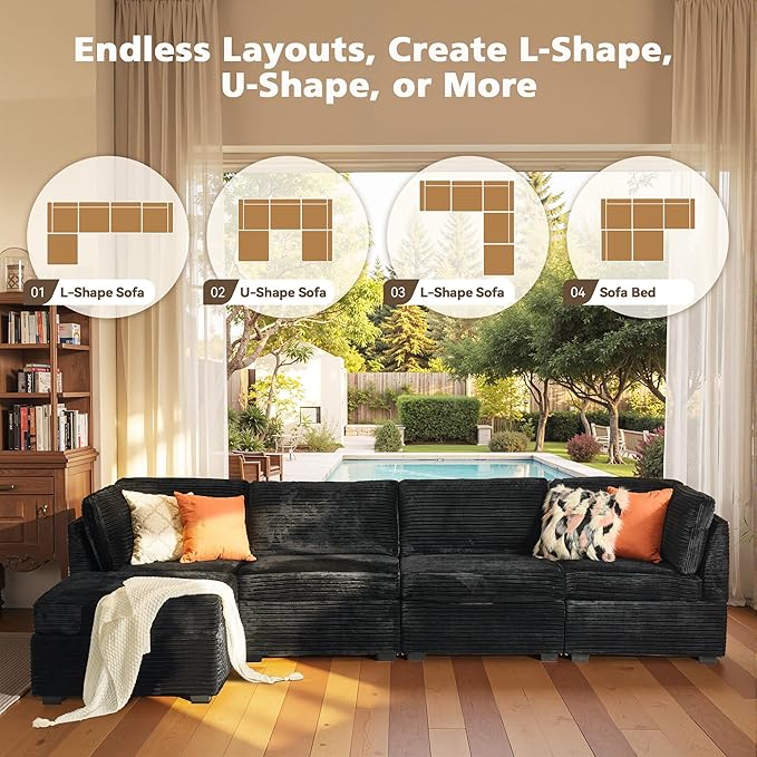 - Spacious Furniture:Sturdy solid wood frame, high-end breathable Plush corduroy fabric, filled with high rebound sponge, making this modular sectional sofa beautiful and comfortable, it can be a perfect match for your living room, bedroom, home office, etc.