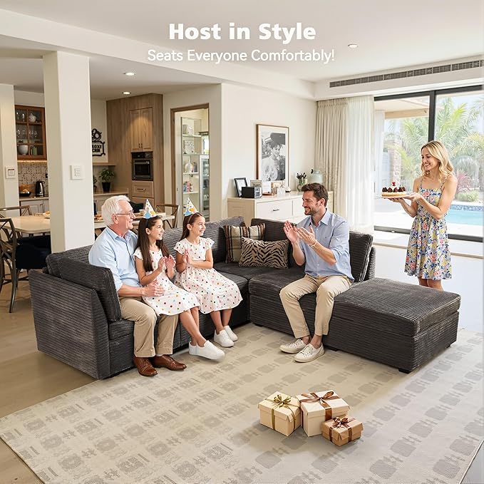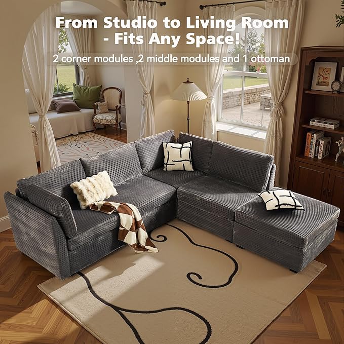- Spacious Furniture:Sturdy solid wood frame, high-end breathable Plush corduroy fabric, filled with high rebound sponge, making this modular sectional sofa beautiful and comfortable, it can be a perfect match for your living room, bedroom, home office, etc.