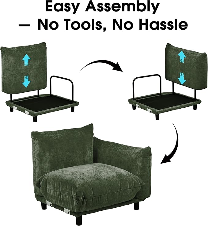 - 【Tool-Free Assembly with Strong Support】 Experience the perfect combination of soft, boneless couch comfort and the durability of a traditional frame. Unlike typical full-foam sofas that can lack support and durability, our sofa features a sturdy metal frame to prevent deformation and extend lifespan. Designed for easy living, it blends full-foam softness with reliable structure. No tools required—just three simple steps for quick setup.