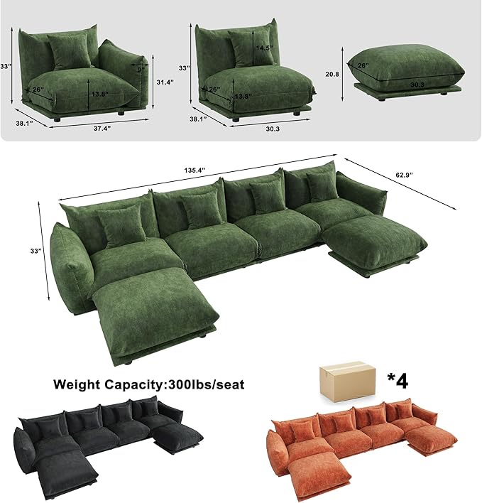 - 【Modular Design & Creative Color Blocking】This modular sofa includes armless seats, corner pieces, and ottomans that can be arranged to fit your space. Seats, backrests, armrests, and cushions can all be freely combined. With three color options, you can create bold color blocking and a personalized look. Depending on your needs, it can be configured into a loveseat, L-shaped sofa, U-shaped sofa, or even a sleeper sectional sofa—perfect for any space or lifestyle.