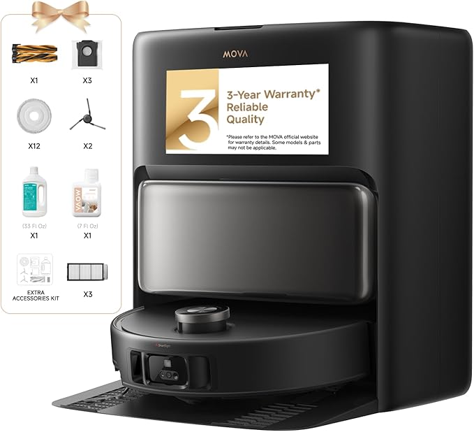 Mova V50 Ultra Complete Robot Vacuum and Mop Self-Cleaning, 24,000 Pa Suction, Liftable Navigation with Obstacle Overcoming and Warm Water Mopping with DuoSolution System Designed for Pets, Black