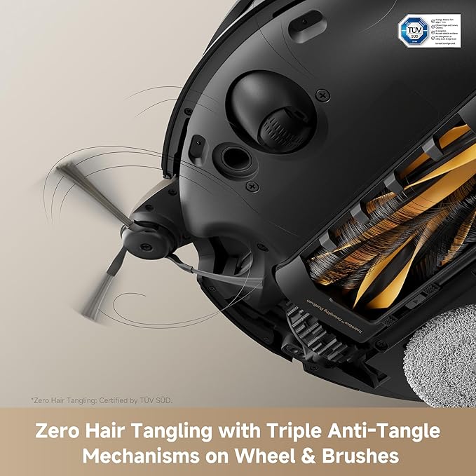 - 100% Hair Removal with 24,000 Pa Suction Power: The V50 Ultra Complete robot vacuums effortlessly cleans carpets and hard floors and removes hair, dirt and debris, thanks to its powerful suction power of 24,000 Pa, the triple anti-tangle mechanisms, including TroboWave DuoBrush, prevent hair from tangling, increasing cleaning efficiency and maintenance effort minimised.