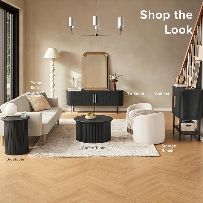 mopio Quin TV Stand, Mid Century Modern for 55/60/65 inch TV, Farmhouse TV Stand, Entertainment Center with Storage, TV and Media Console for Living Room (Black, 59" Tambour)