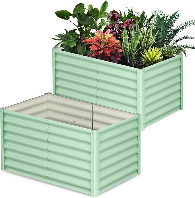 Large Outdoor Planter Boxes Kit Set of 2, 6x3x2ft Galvanized Raised Bed Planter with Open-Ended Base Design, Elevated for Outdoor Plants, Durable Raised Bed for Gardening,Green