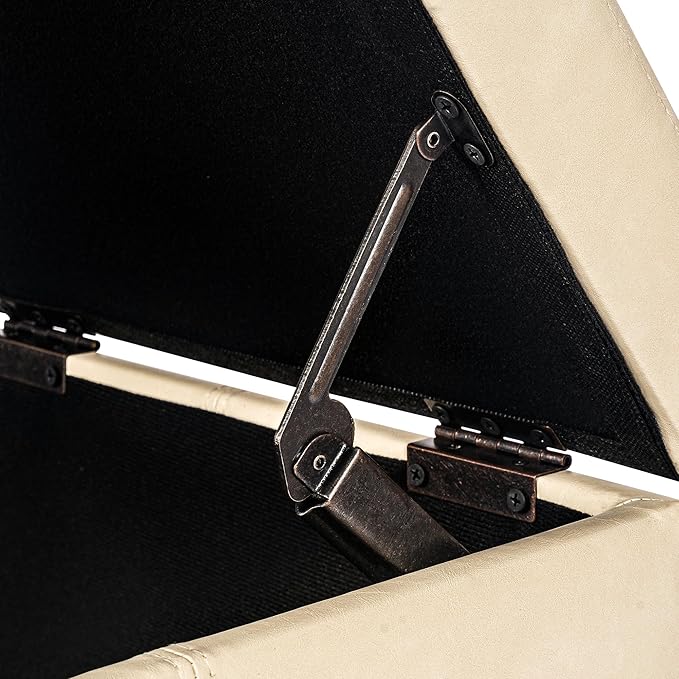 - SAFETY DESIGN: Constructed with a sturdy corner-blocked frame . Padded hinged lid stays open for safe access to storage space inside—great for your blanket and throw pillows.
