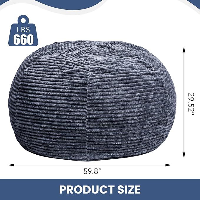- HIGH-QUALITY CHAIR COVER: Our large bean bags are made of thicker and thickened corduroy fabric, which has a very soft and skin-friendly texture, and is more durable and stain resistant than ordinary fabrics.