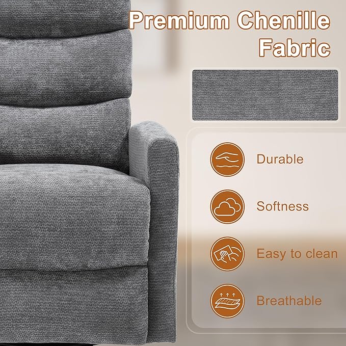 Manual Swivel Rocker Recliner Chair for Adults, Overstuffed Reclining Glider Chair for Nursing with Vibration Massage & Heat, Living Room Rocking Recliner 3-Stage backrest, Chenille Fabric Dark Gray