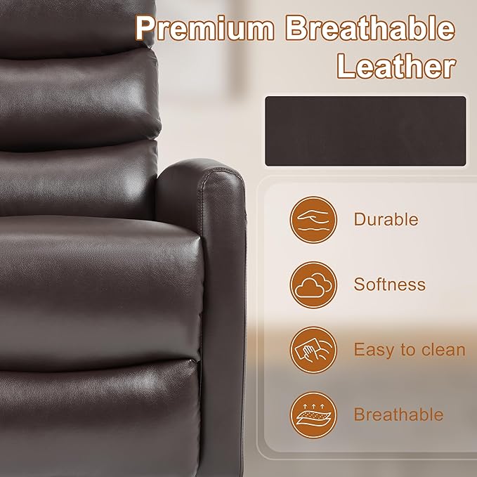 Manual Swivel Rocker Recliner Chair for Adults, Overstuffed Reclining Glider Chair for Nursing with Vibration Massage & Heat, Living Room Rocking Recliner 3-Stage backrest, Faux Leather Brown