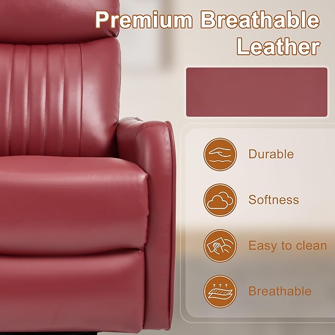 Manual Swivel Rocker Recliner Chair for Adults, Overstuffed Reclining Glider Chair for Nursing with Vibration Massage & Heat, Living Room Rocking Recliner 2-Stage backrest, Faux Leather Red