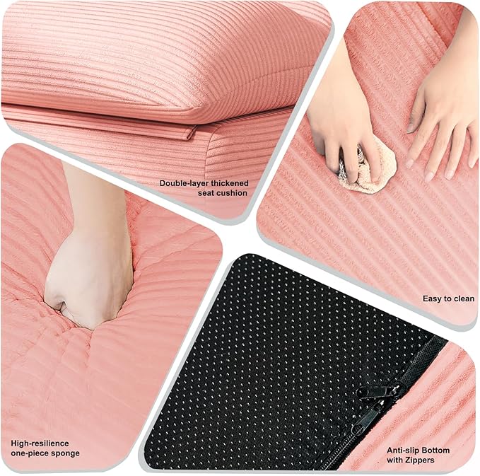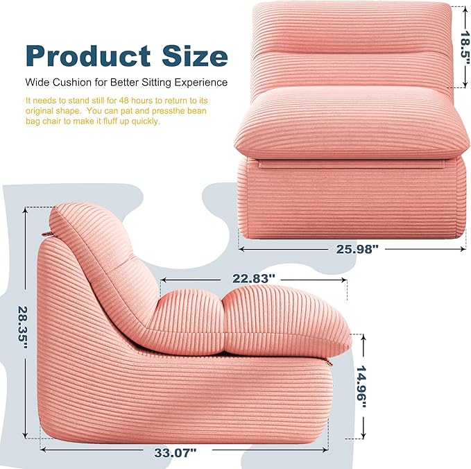 Misolant Bean Bag Chairs,Big Corduroy Fabric Sofa Bean Bag Chair for Adults and Teens with High-Resilience Sponge, Non-Slip Base Floor Lounge Sofa for Home, Living Room, Bedroom, Gaming Pink