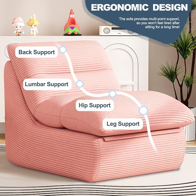 - 【Ergonomic Comfort Design】This floor Lounge sofa prioritizes your comfort with a thoughtfully engineered ergonomic design that delivers exceptional support to your neck, back, lumbar area, hips, and legs. The high-resilience foam filling conforms to your body’s contours. creating a comfortable seating experience.