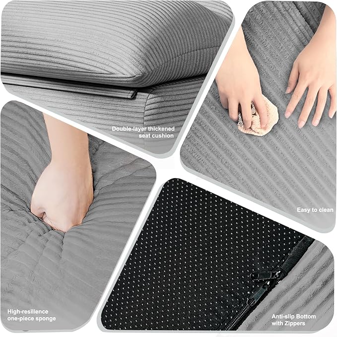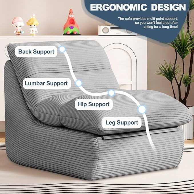 - 【Ergonomic Comfort Design】This floor Lounge sofa prioritizes your comfort with a thoughtfully engineered ergonomic design that delivers exceptional support to your neck, back, lumbar area, hips, and legs. The high-resilience foam filling conforms to your body’s contours. creating a comfortable seating experience.