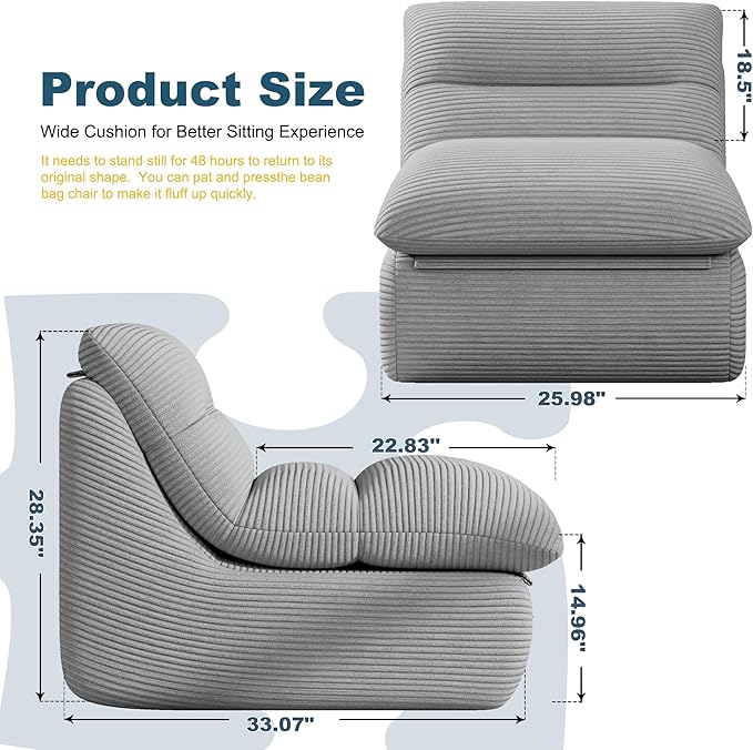 - 【Premium & Comfortable Fabric】: Misolant Bean Bag Sofa Chair is made of high-grade Corduroy Fabric , which is skin-friendly and fashionable, with a soft and delicate touch, and good warmth retention. The fabric is thick, durable and long-lasting.